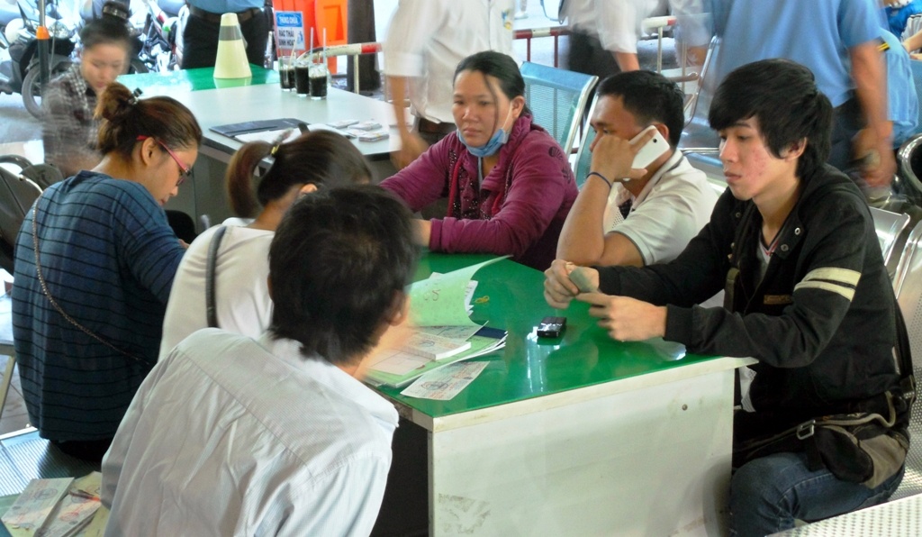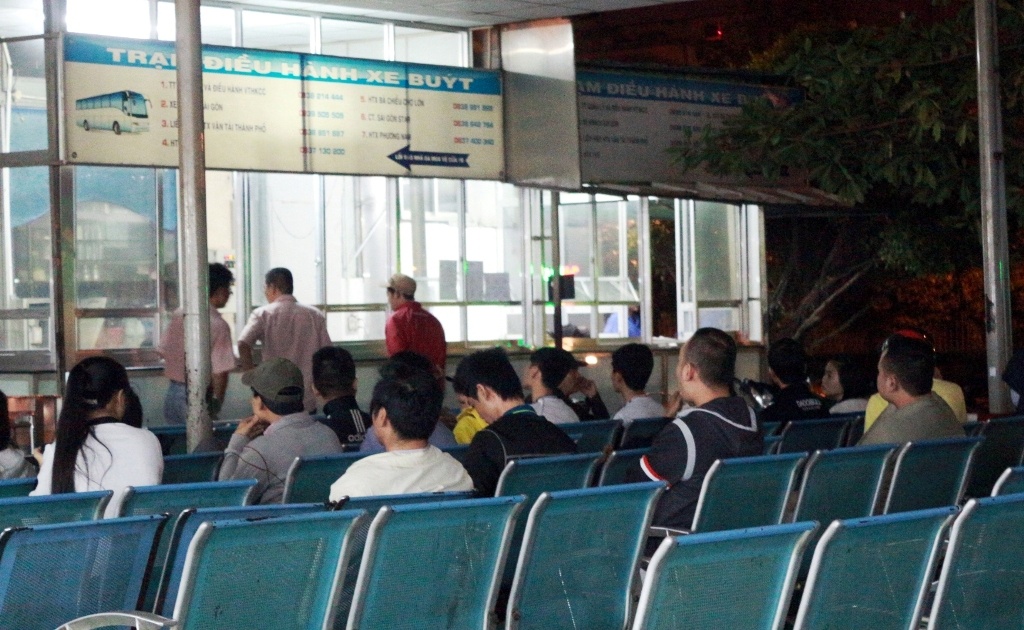 | Bến xe Miền Đông trang bị 3 khu vực ghế chờ, khách ngồi khu vực nào chỉ được mua vé xe hãng đó, nếu ngồi nhầm thì phải đổi khu vực và xếp hàng lại từ đầu như những người mới đến. Do ông Tùng và con trai ngồi nhầm nên dù đến rất sớm, ông vẫn phải ra về mà không mua được vé. Nhiều hành khách giống như ông Tùng tỏ vẻ rất mệt mỏi. |