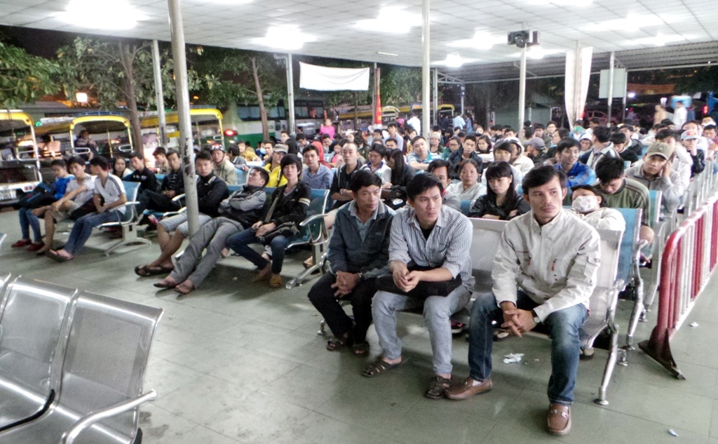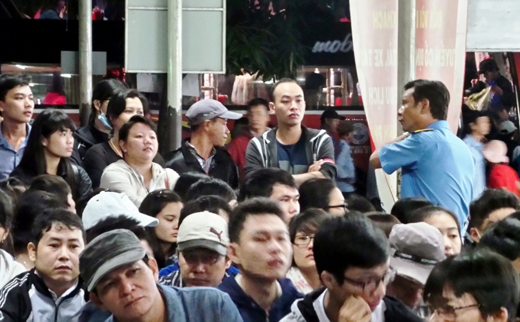 | Đến 5h, người dân vẫn tiếp tục đổ về bến xe. Nhiều người đến sau phải đứng chờ vì không còn ghế. |