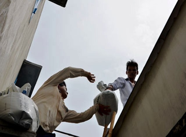 | Người dân vùng biển Bà Rịa - Vũng Tàu đưa bao cát lên mái nhà. Ảnh: Gia An |