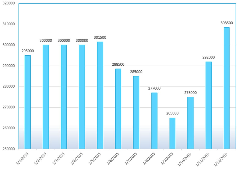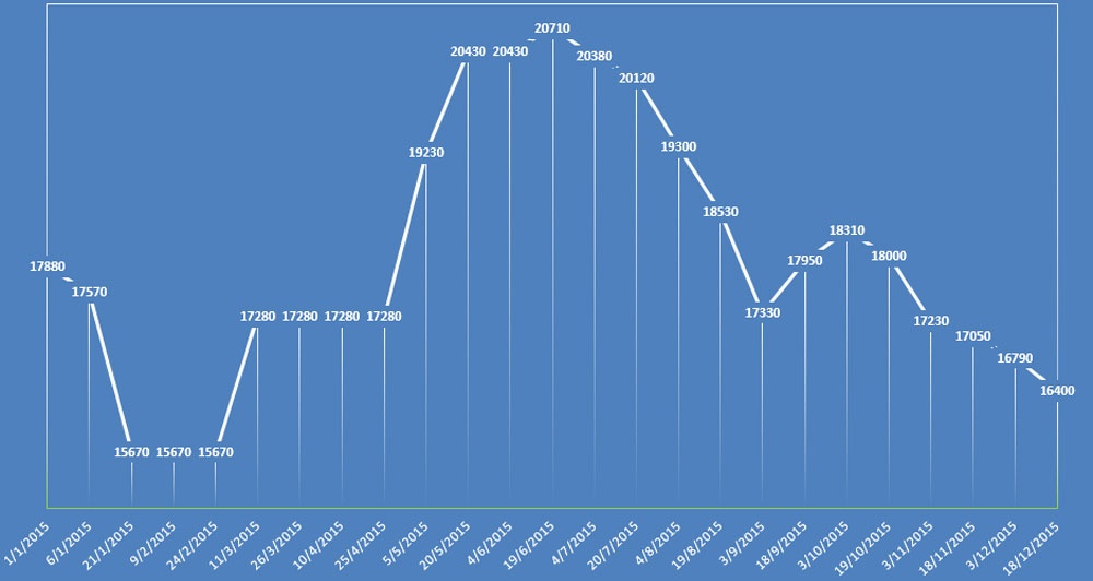 | Biểu đồ điều chỉnh giá xăng Ron 92 trong năm 2015. Đồ thị: Hạ Minh. |