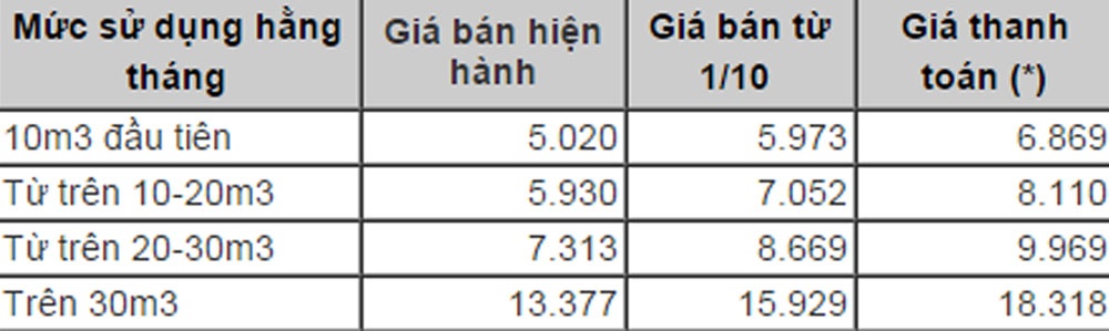 | Giá nước sạch tại Hà Nội điều chỉnh từ ngày 1/10. |