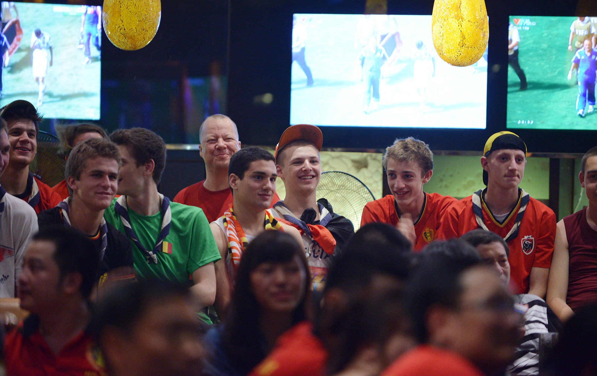 Một quán bar lớn ven Hồ Tây được fan của đội tuyển Bỉ chọn làm nơi cổ vũ bóng đá.