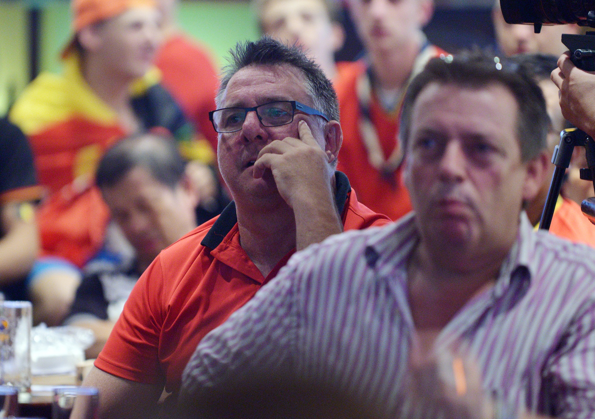Anh mắt buồn của Katrin khi đội nhà bị dẫn trước, bé đến đây cổ vũ cho đội tuyển Bỉ cùng bố mẹ.
