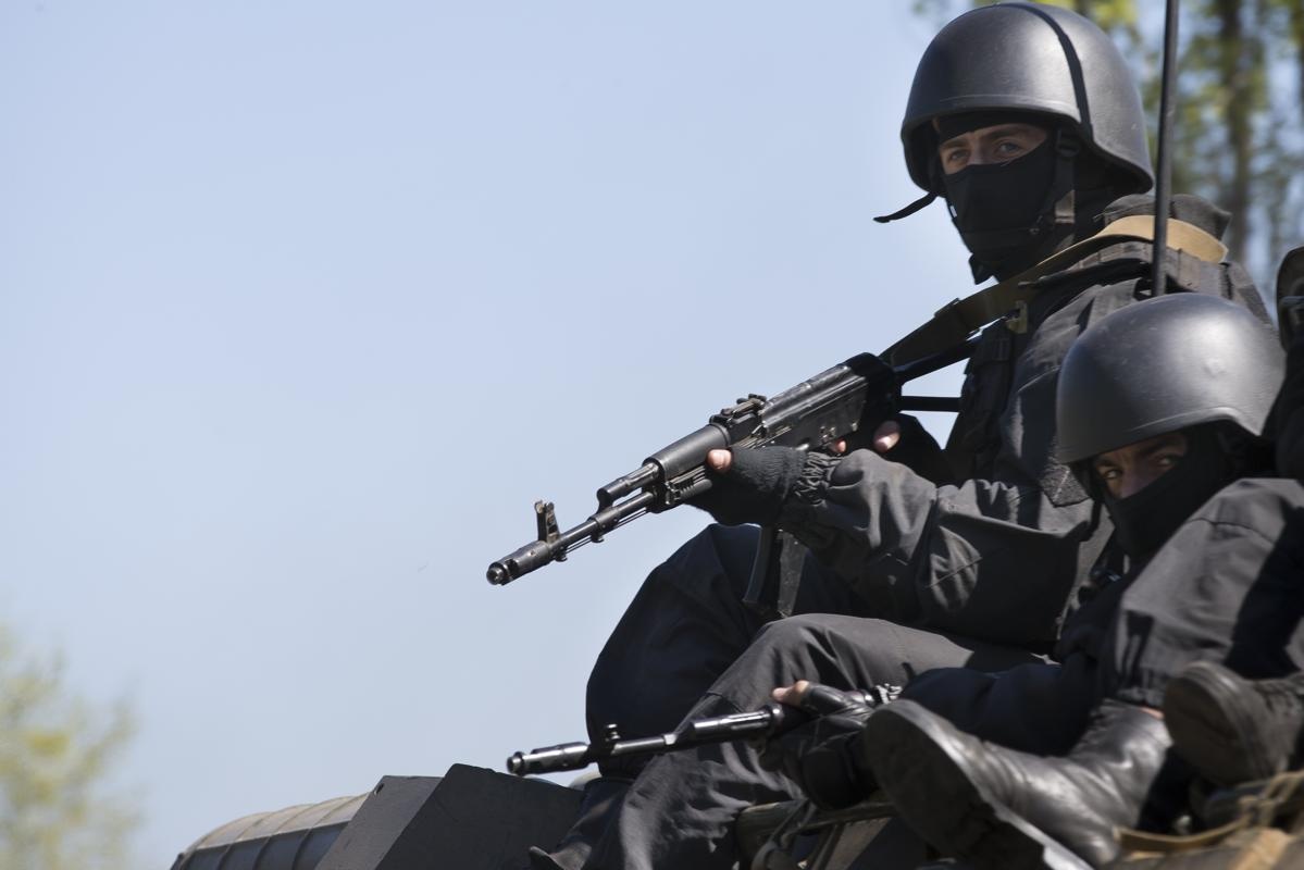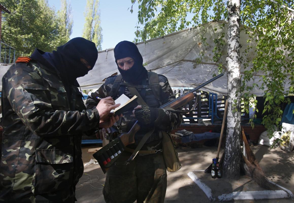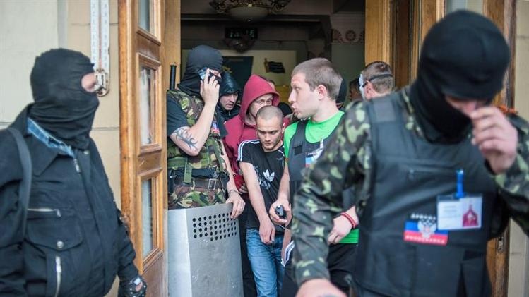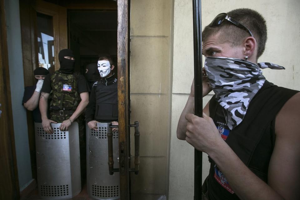 | Đây là lần đầu tiên những người muốn ly khai chiếm đài truyền hình ở miền đông Ukraina. Trước đó họ chiếm hàng chục tòa nhà công quyền trong khu vực. Ảnh: EFE |