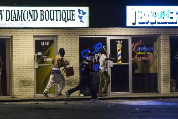 | Những phần tử quá khích vơ vét hàng hóa trong các quán tại thành phố Ferguson. Ngày 16/8, Thống đốc bang Missouri đã phải ban bố tình trạng khẩn cấp ở Ferguson sau hàng loạt cuộc bạo động. Ảnh: themalaysianinsider |