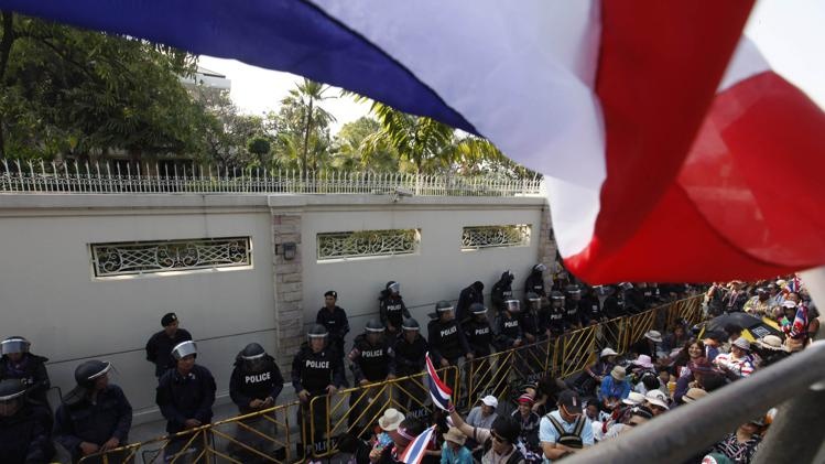 | Người biểu tình vây nhà của Thủ tướng Yingluck Shinawatra tại thành phố Bangkok hôm 26/12 để đòi bà từ chức. Ảnh: Reuters |