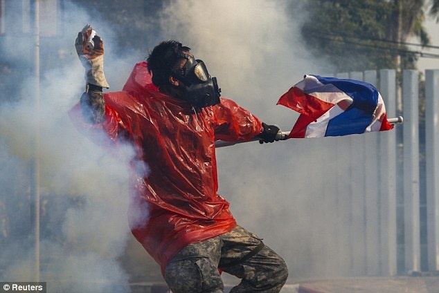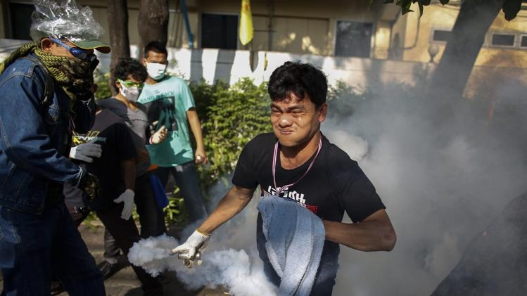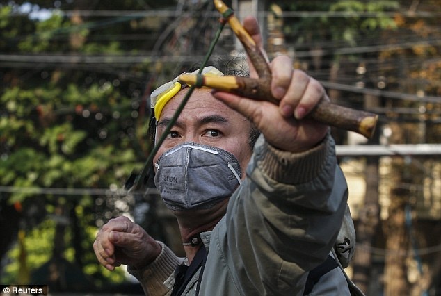 | Súng cao su tiếp tục xuất hiện trong cuộc biểu tình chống chính phủ Thái Lan tại thành phố Bangkok hôm 26/12. Ảnh: Tân Hoa Xã |