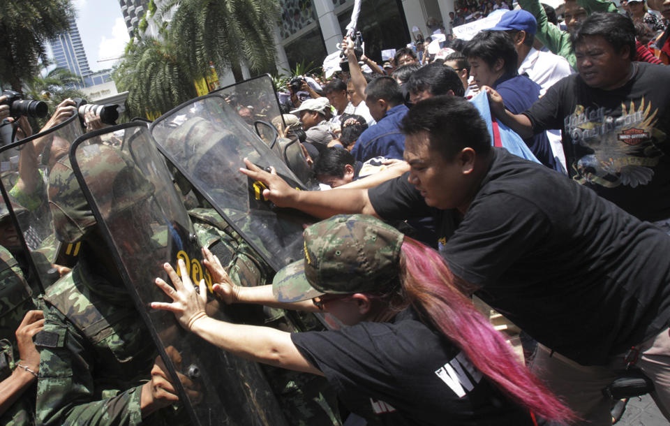| Những người biểu tình cho rằng đảo chính không thể chấm dứt sự chia rẽ sâu sắc trong xã hội Thái Lan. Ảnh: AP |