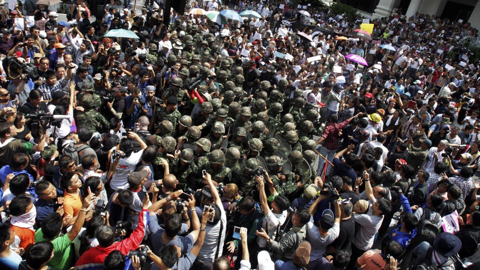 | Trong cuộc họp báo hôm nay, người phát ngôn của quân đội tuyên bố nền dân chủ đã gây tổn thất cho đất nước Thái Lan. Ảnh: Reuters |