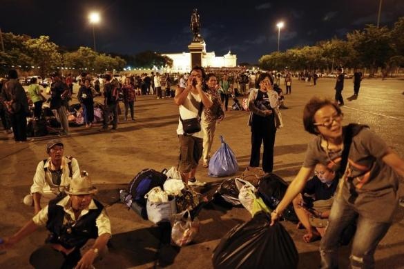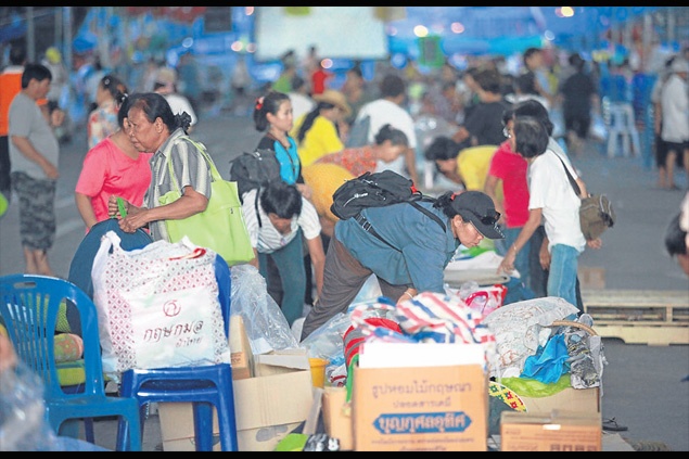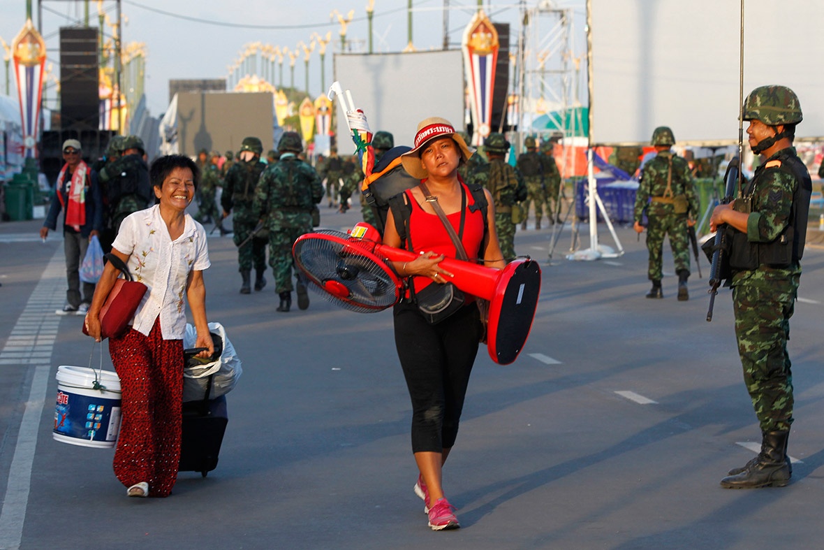 | Những người chống chính phủ khăn gói ra về. Trước tình hình chính trị phức tạp tại Thái Lan, đại sứ quán Mỹ tại Bangkok cảnh báo dân Mỹ cần cảnh giác, thận trọng và theo dõi các phương tiện truyền thông, tránh những khu vực có biểu tình, đám đông tập trung hay các hoạt động an ninh. Dự kiến, cuộc đảo chính sẽ ảnh hưởng nhiều đến du lịch Thái Lan. Ảnh: AFP. |