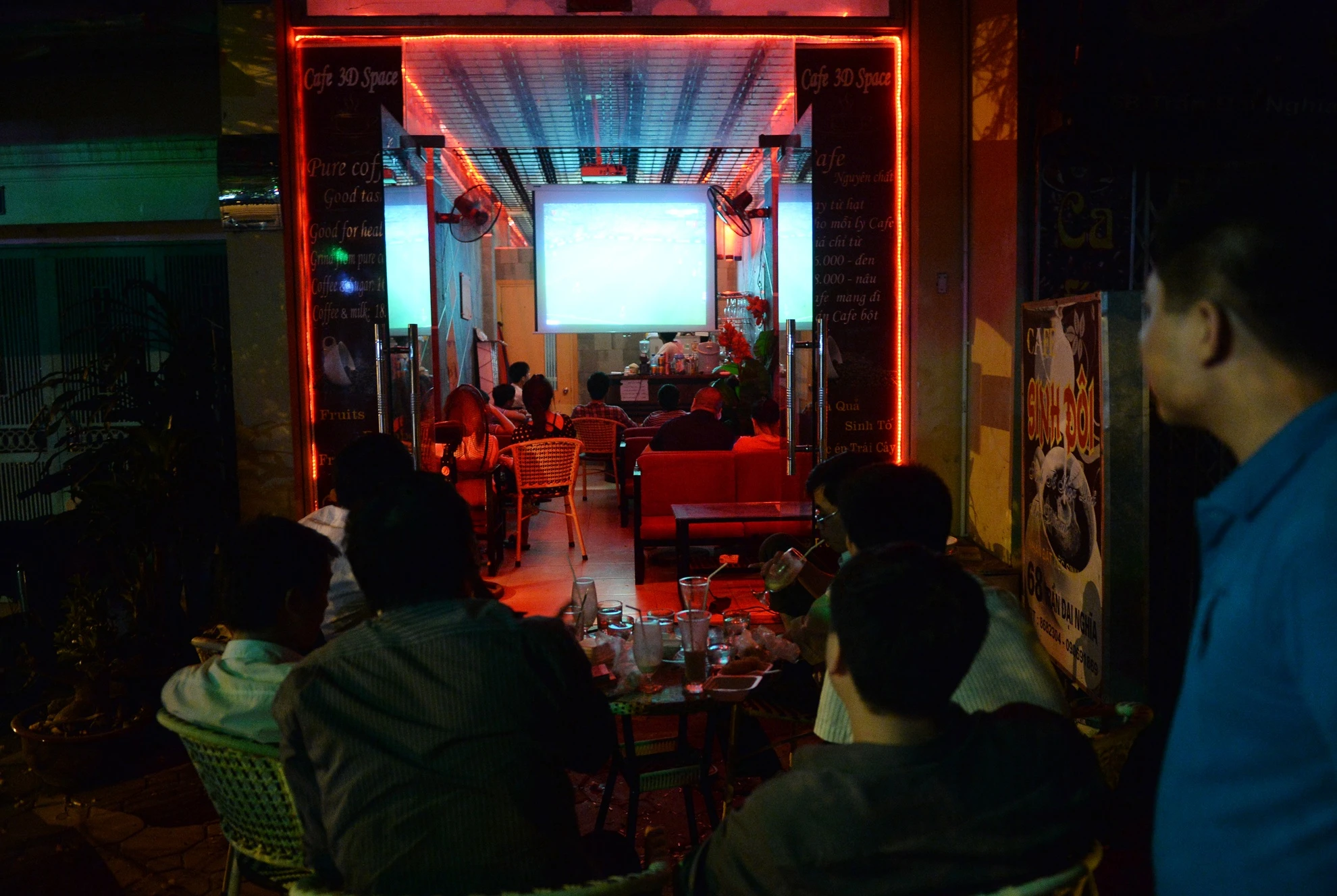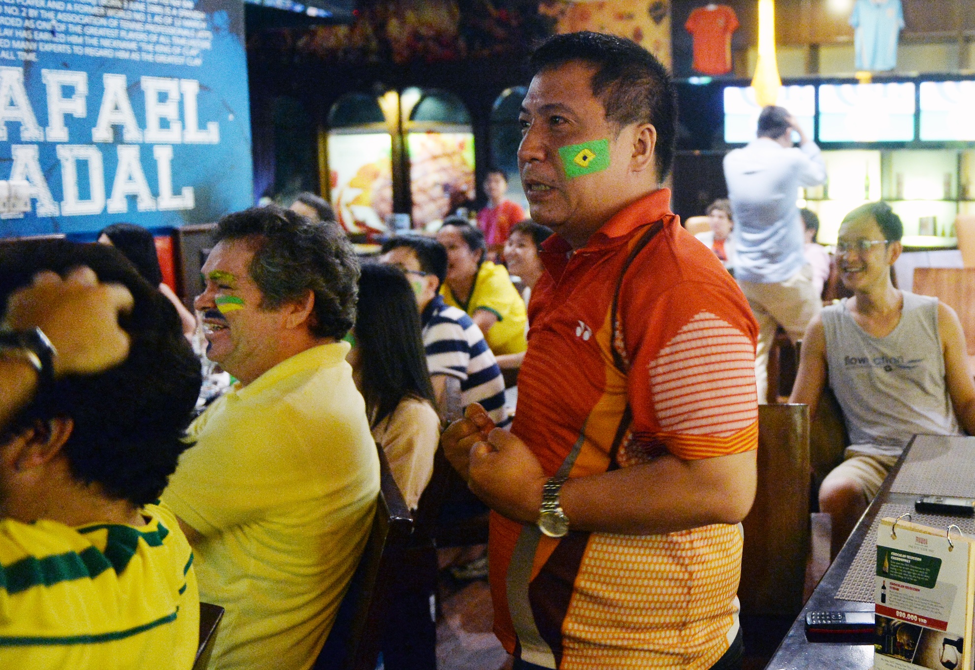 Trên đường Xuân Diệu, có khoảng 20 người (cả người nước ngoài) đến một nhà hàng cổ vũ cho Brazil.