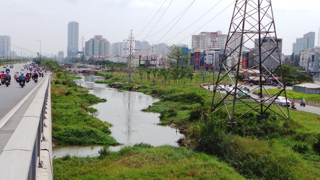 | Con rạch gần chân cầu Sài Gòn, nơi anh Đức câu cá và bị phóng điện từ đường dây 110 kV dẫn đến tử vong. |