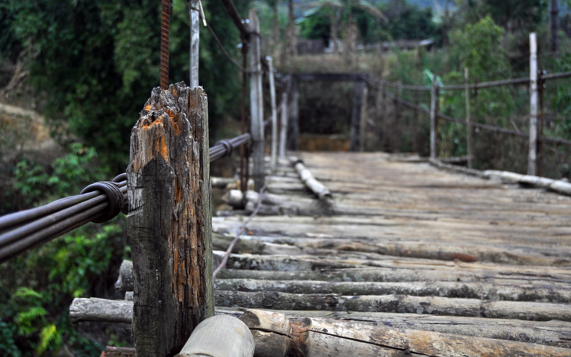 Từ ngày cầu treo Chu Va 6 bị sập, người dân hai bản Chu Va 6, Chu Va 8 phải di chuyển qua cây cầu treo cũ. Mặt cầu được làm bằng cây, ván gỗ nhưng đã khô mục.