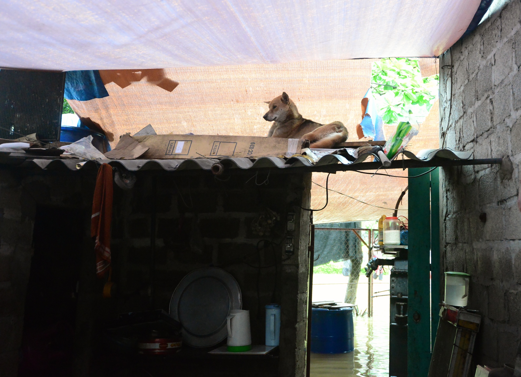 Mặc dù mưa đã ngớt nhưng nước rút khá chậm. Người dân vẫn phải loay hoay chống đỡ trận lụt lịch sử.