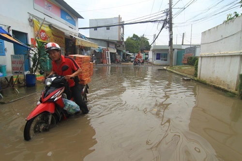 Cô Lê Thị Lan, người bán tạp hóa ở đường 19, cho biết: “Trước của nhà tôi cứ mưa là ngập nặng, nếu 3 ngày không mưa thì nước mới rút hết. Chúng tôi bị "chết đứng" vì việc buôn bán bị ế ẩm. Đã thế 2 vợ chồng còn phải thường xuyên thay nhau múc nước ra khỏi nhà”.