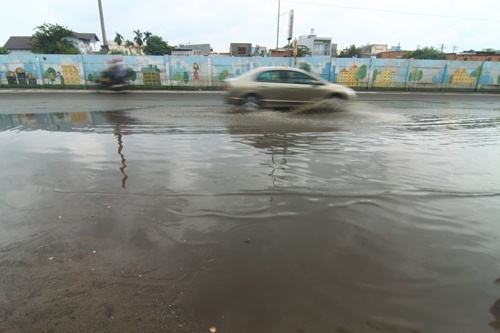 Hệ thống thoát nước bị tắc khiến nút rút chậm, tạo thành nhiều vũng nước sau các cơn mưa trên đường Kha Vạn Cân. |