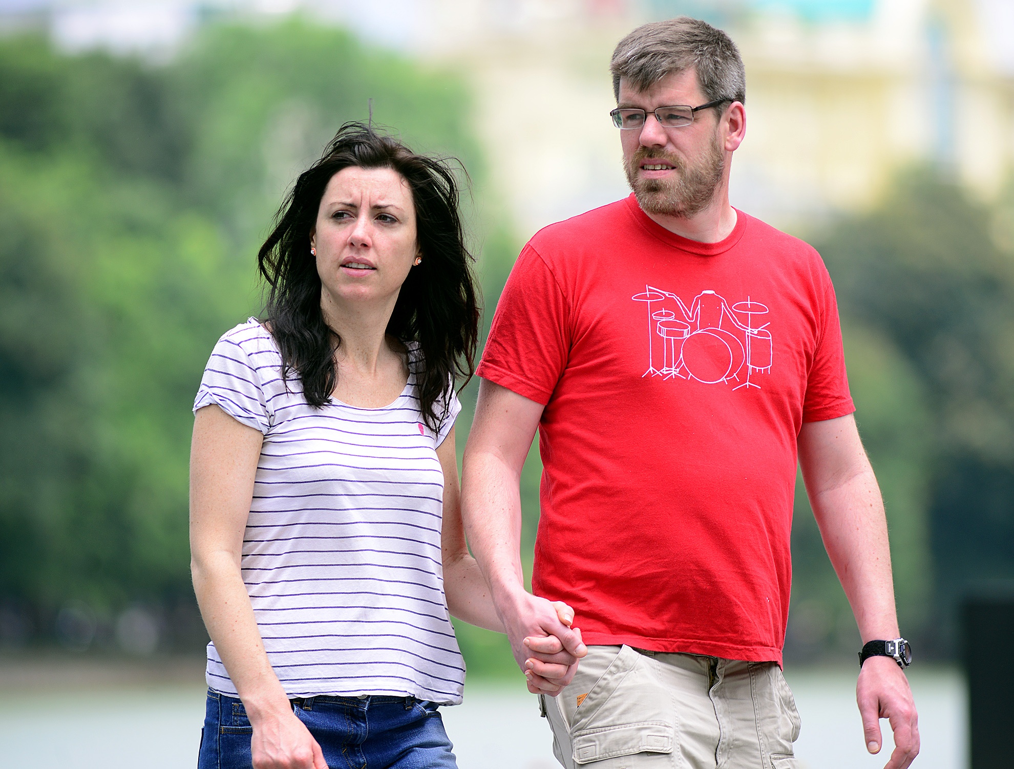| Anh Adam cùng vợ đến Việt Nam đúng vào thời điểm nóng. Người đàn ông quốc tịch Anh cho biết, hai ngày trước vợ chồng không dám ra ngoài vì thời tiết quá đáng sợ. |