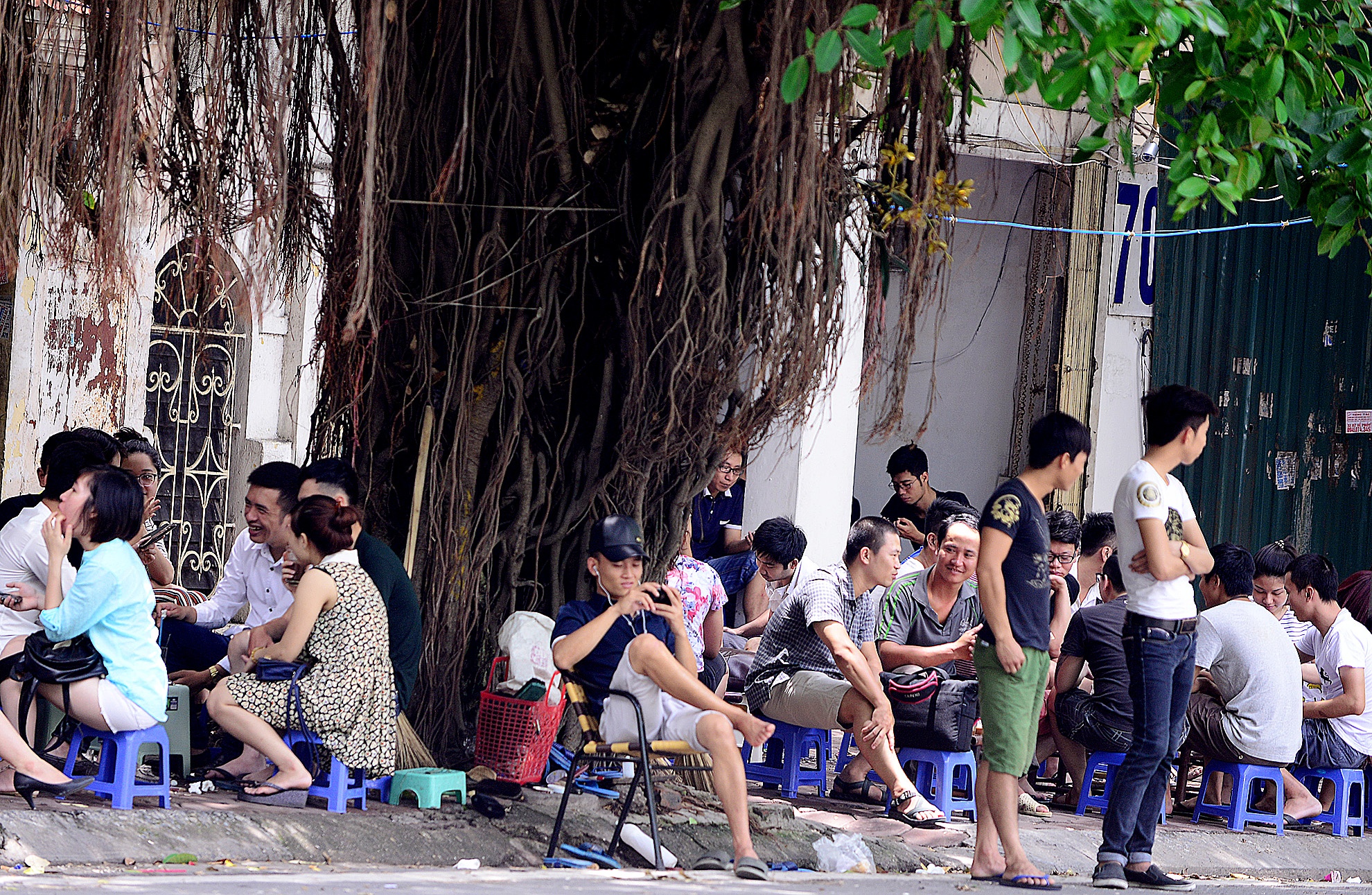 | Các quán cà phê vỉa hè trên phố Nguyễn Du, Lương Văn Can, Hàng Giấy... đông nghịt người. |