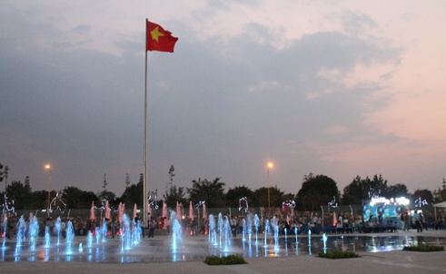 | Cột cờ trước trụ sở trung tâm hành chính mới. |