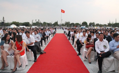 | Không khí nhộn nhịp trước trung tâm hành chính mới trong ngày khánh thành. |