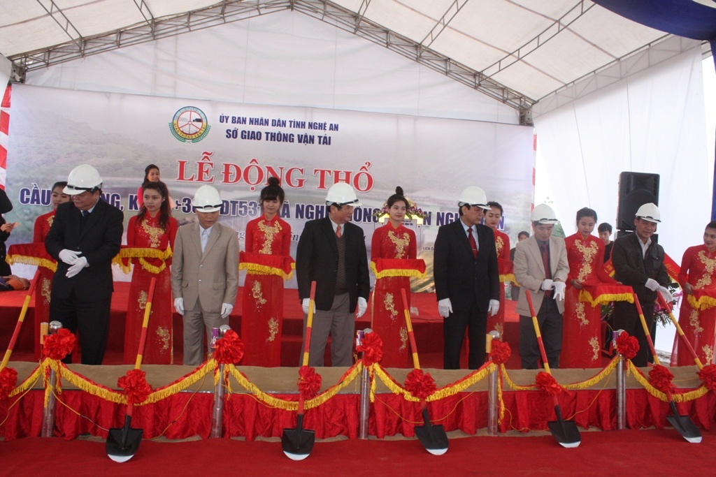 | Sáng 22/3, Sở GTVT tỉnh Nghệ An đã tiến hành lễ động thổ xây dựng công trình cầu Khe Ang tại xã Nghĩa Hồng, huyện Nghĩa Đàn - nơi xảy ra vụ lũ cuốn trôi xe ô tô làm 5 người tử vong vào tháng 9/2013. |