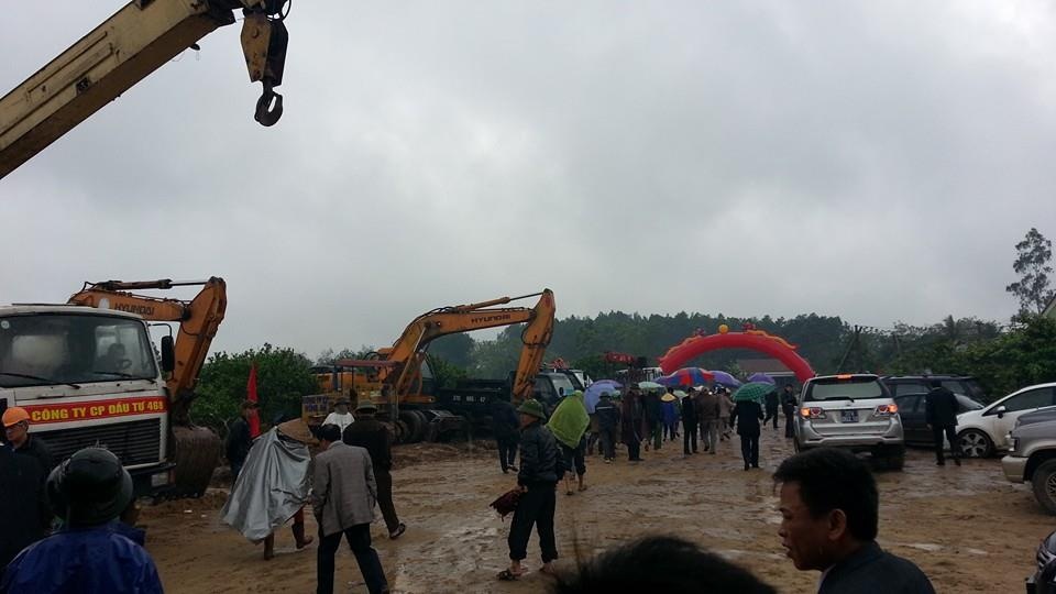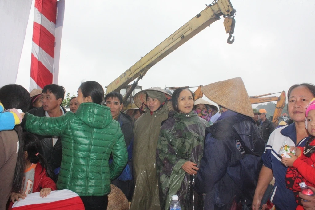 Người dân đội mưa xem lễ khởi công cầu Khe Ang