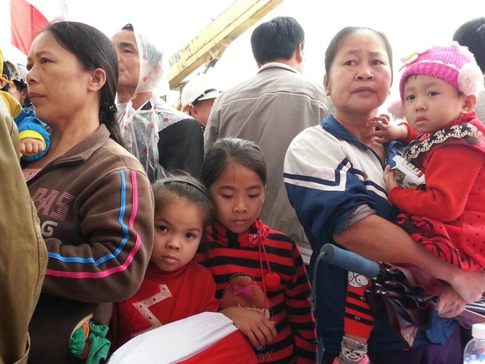 | Không những người lớn mà trẻ em cũng cùng mẹ đến xem lễ khởi công. Rồi đây các em sẽ không phải vượt "tử thần" để đến trường nữa. |