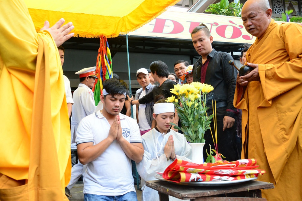| Trước giờ di quan, Kiều Oanh và em trai Duy Nhân cùng sư thầy làm lễ cúng sinh đường. So với những người thân, cô gái 24 tuổi tỏ ra cứng rắn, mạnh mẽ khác với vẻ ngoài nhỏ nhắn. |