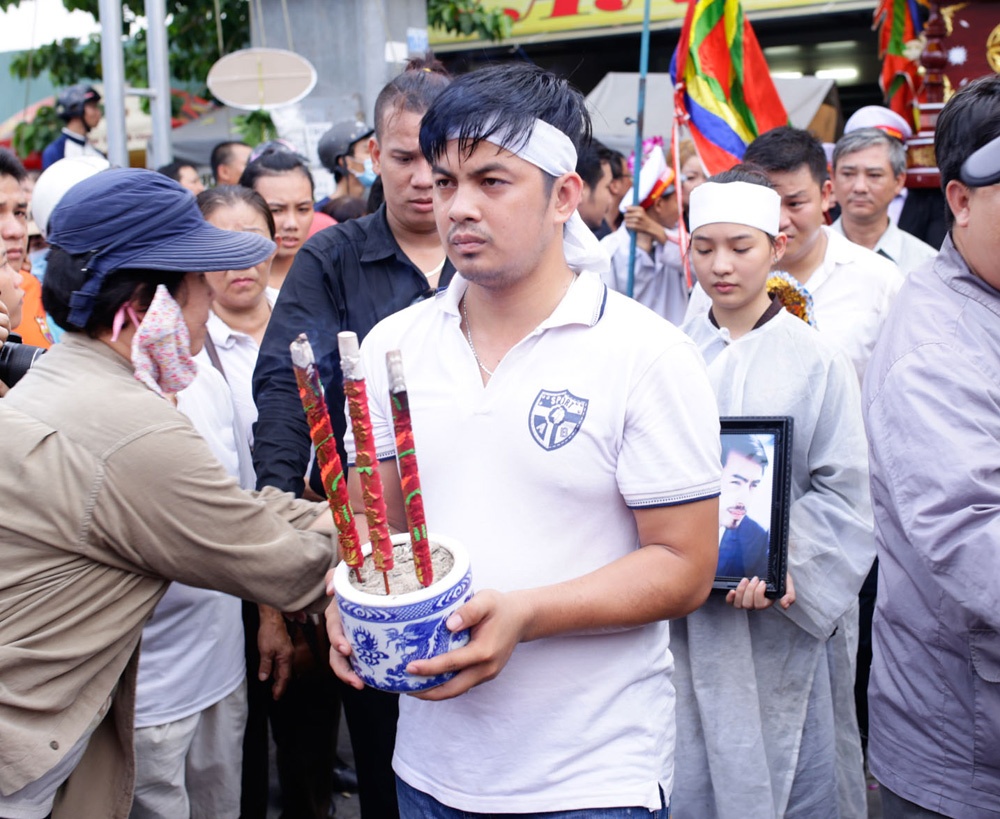 | Sáng 9/5, người thân Duy Nhân tập trung tại nhà tang lễ chùa Vĩnh Nghiêm, TP HCM tiễn biệt anh lần cuối. Em trai nam diễn viên Hồ sơ đen đầy tâm trạng trước linh cữu anh. |