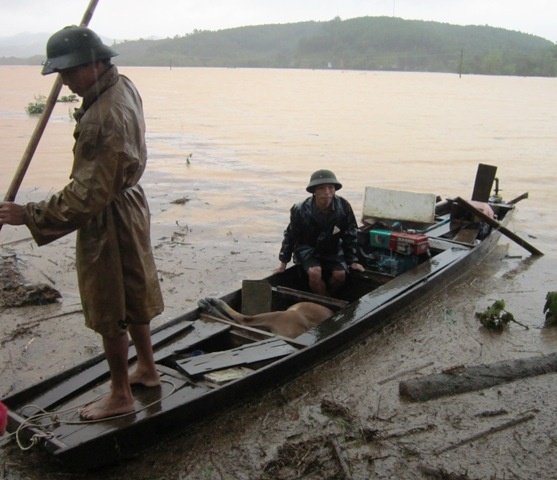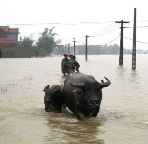 | Trâu bò được di chuyển lên vùng cao trước khi nước ngập tới. |