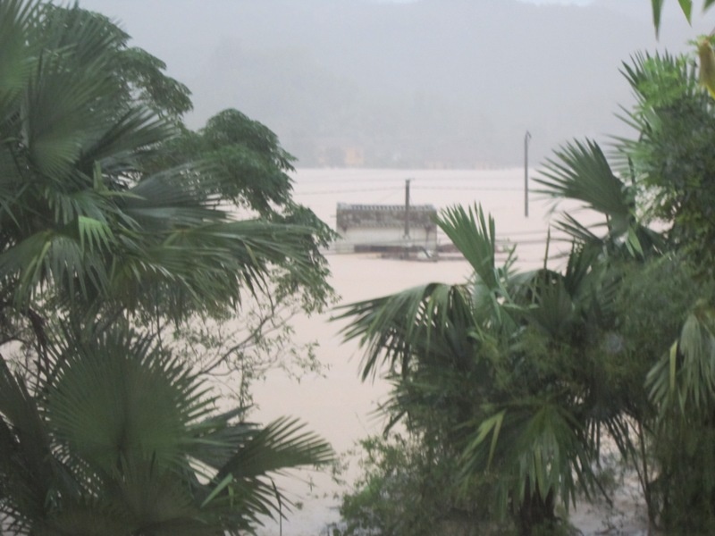 | Hiện tại nhiều nhà dân vẫn đang ngập tới nóc. |