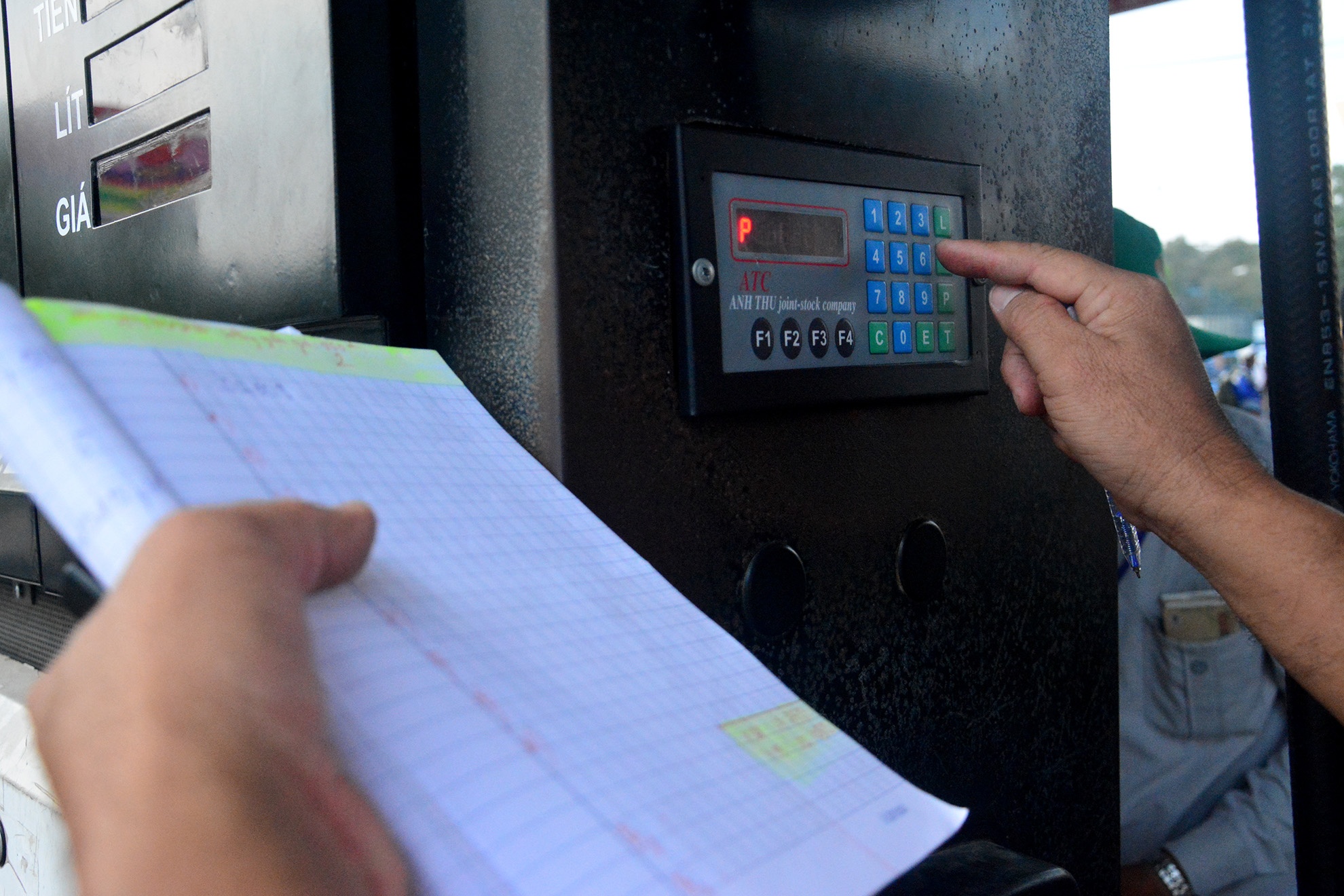 | Đúng 15h, nhân viên các trạm bán xăng thay biển và điều chỉnh đồng hồ. |