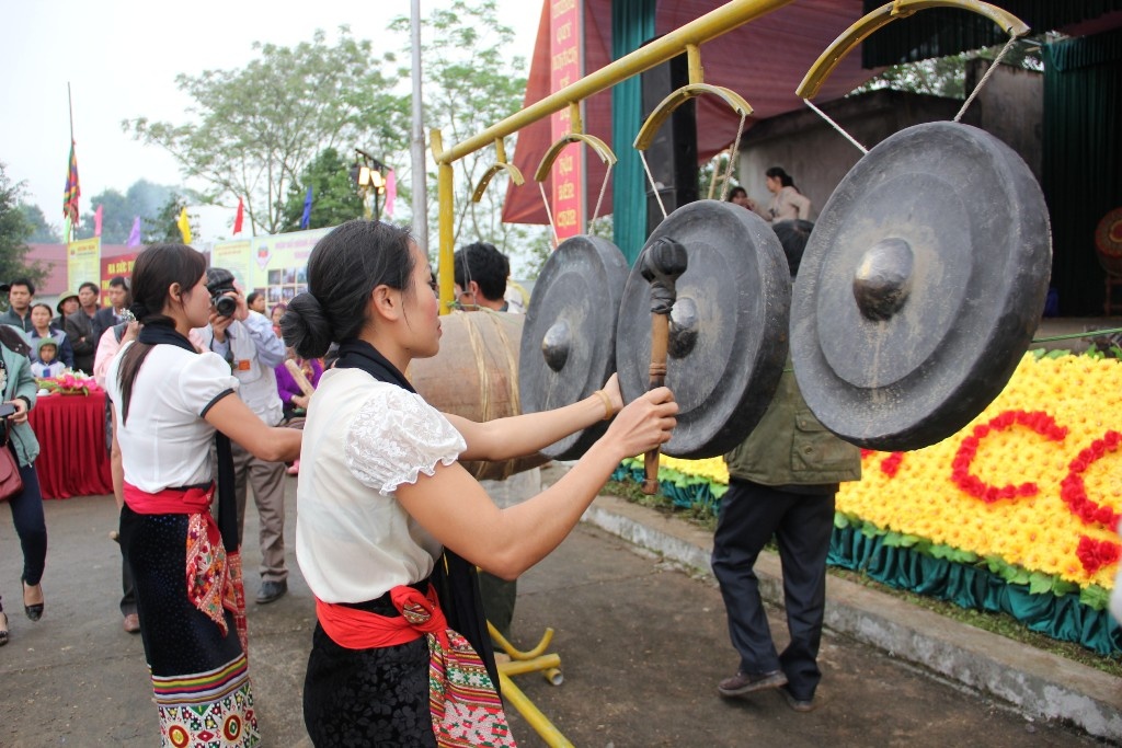 | Tiếng cồng chiêng làm cho không khí lễ hội thêm rộn ràng. |