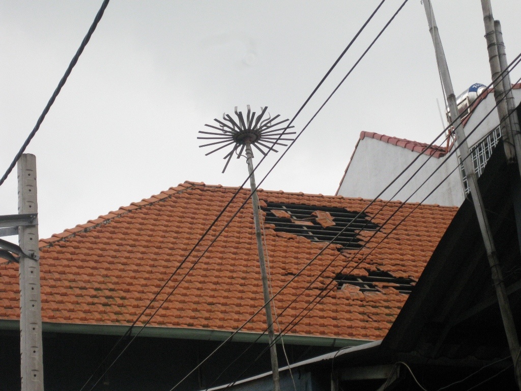 May mắn thời điểm trên trong phòng không có người nên không gây hậu quả đáng tiếc. Từ khu vực tầng trệt nhìn lên, phần mái ngói bị thủng và rơi một phần ngói nằm gọn trong một căn phòng, một phần ngói khác bay qua mái tôn khu nhà trọ bên cạnh làm thủng nhiều lỗ nhỏ.