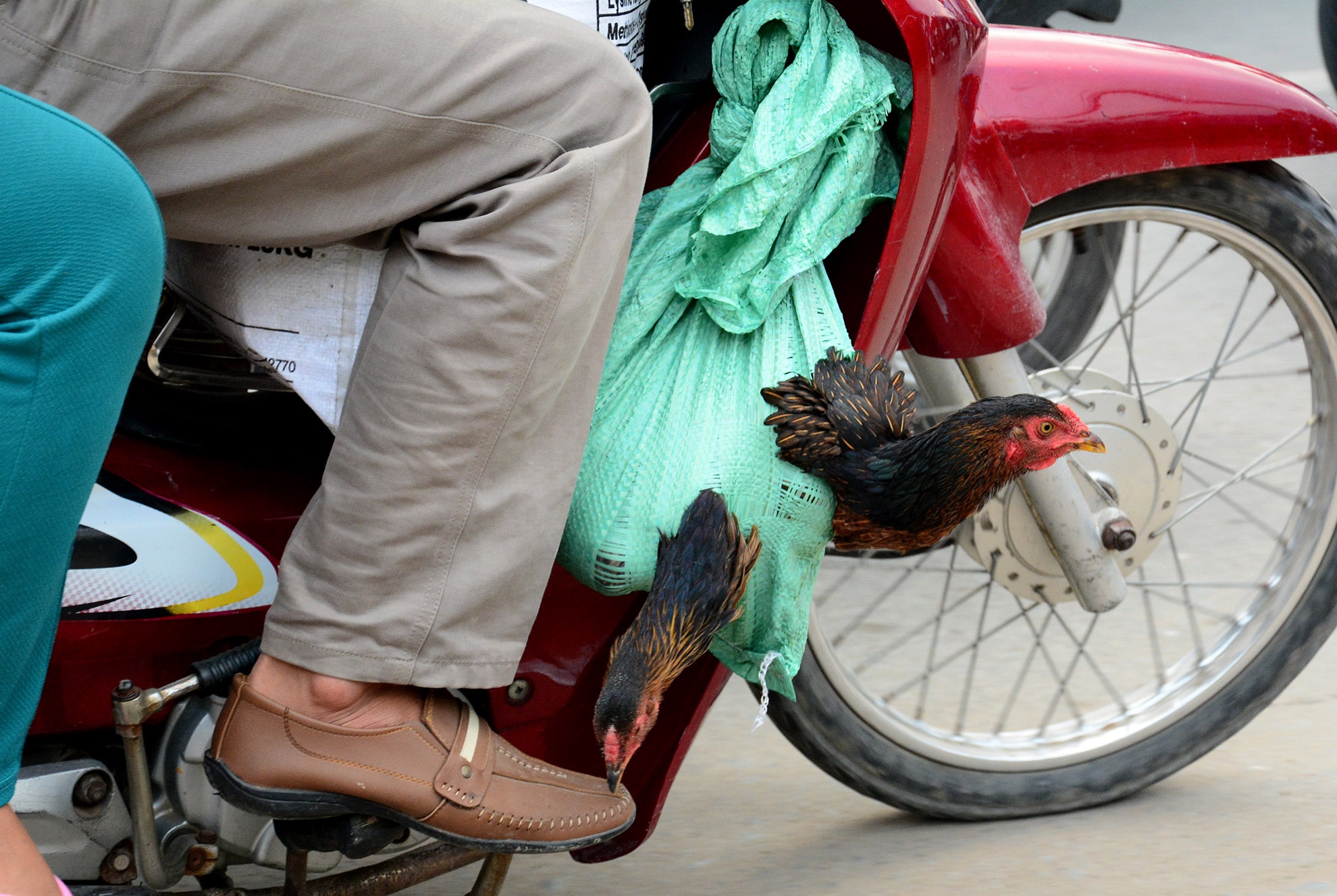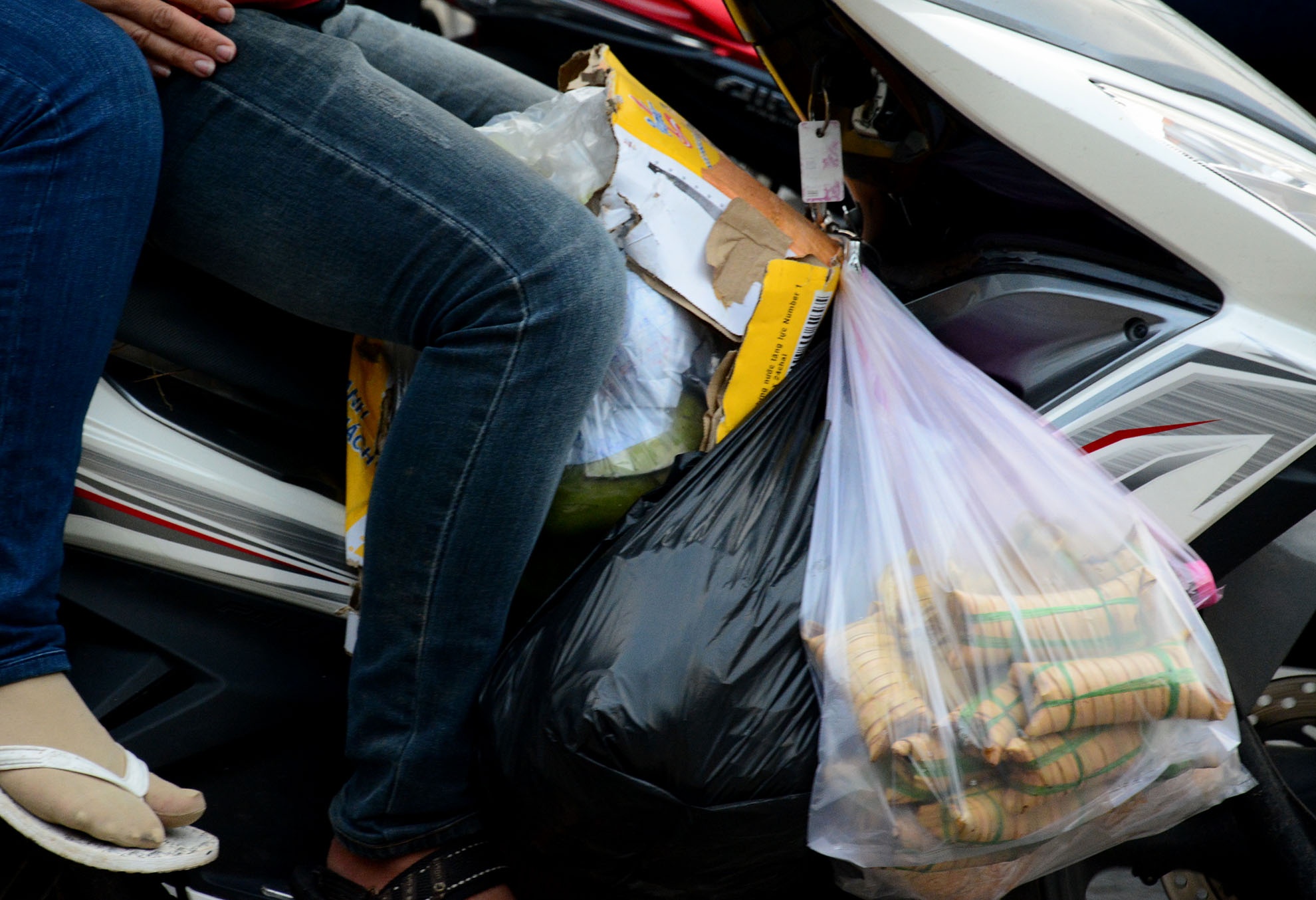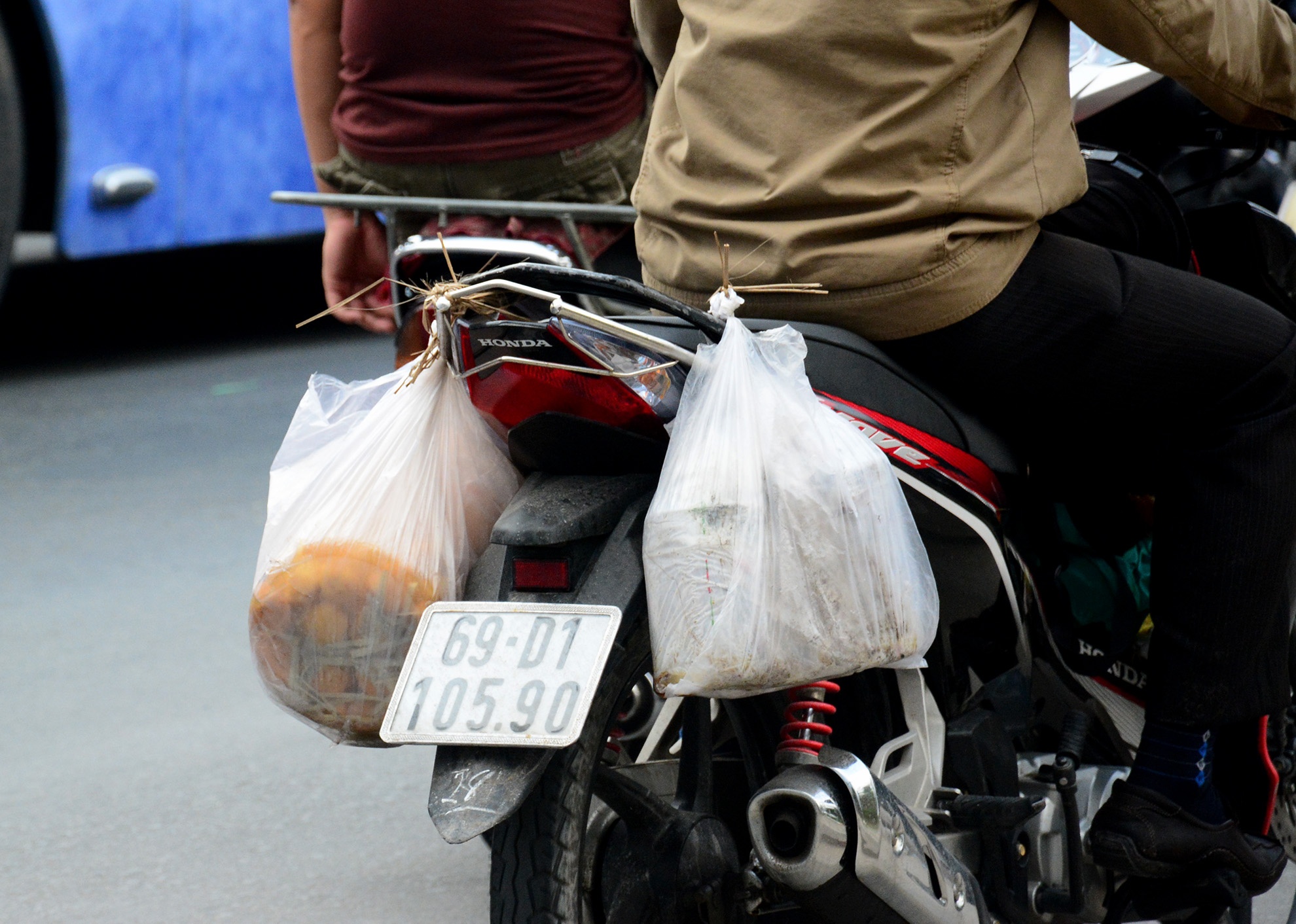 | Các loại bánh treo lủng lẳng phía sau xe máy. |