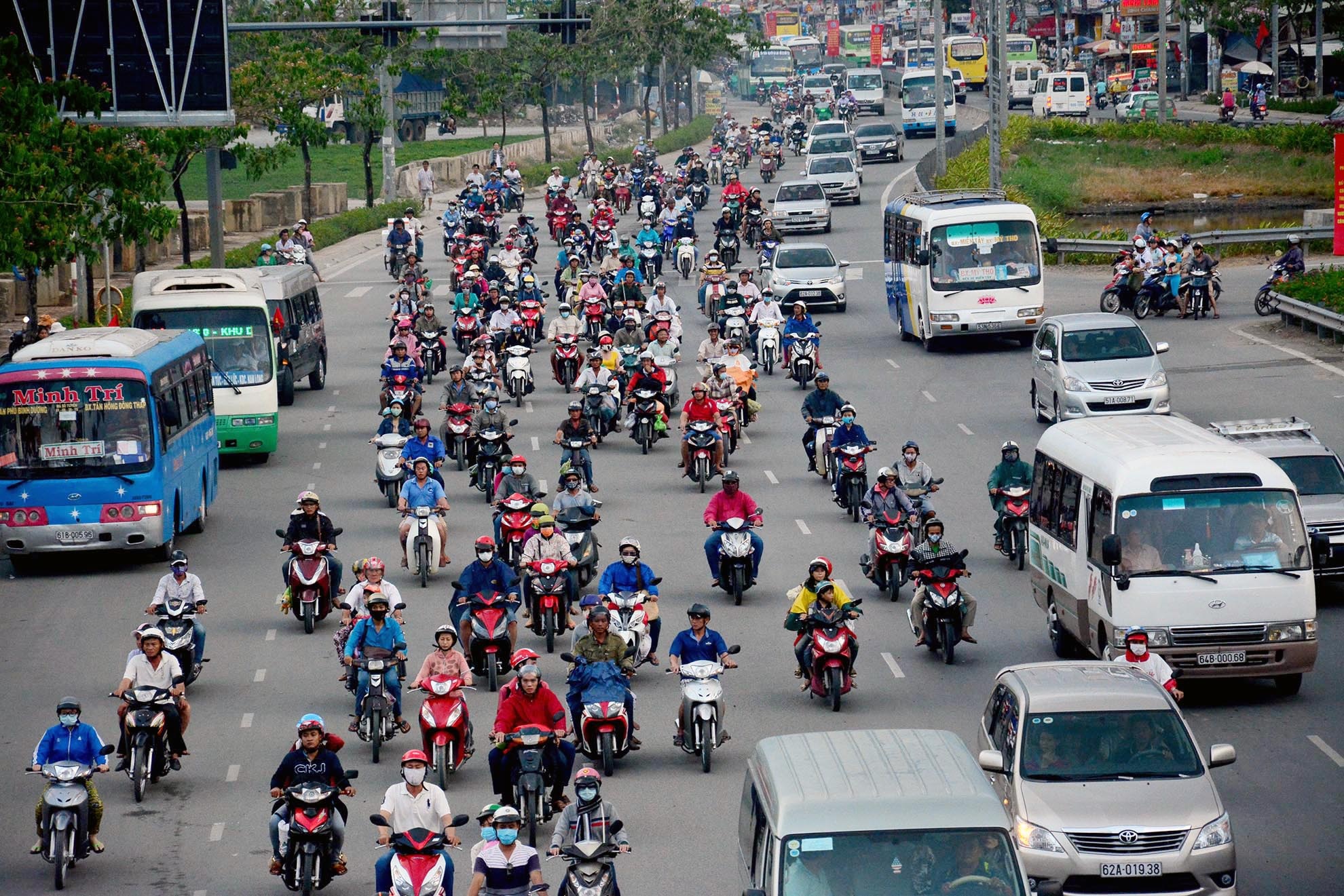 Chiều 3/5, kết thúc kỳ nghỉ lễ kéo dài, nhiều người trở lại Sài Gòn để tiếp tục công việc, học hành khiến các cửa ngõ giao thông vào thành phố khá đông đúc. Cửa ngõ phía Tây (quốc lộ 1A, huyện Bình Chánh, TP HCM) chật ních xe máy.