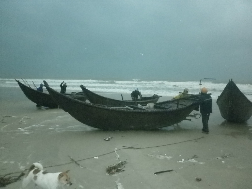 Tại các xã ven biển, ngư dân kéo tàu, thuyền vào bờ neo đậu trú bão diễn ra rất khẩn trương. Bên cạnh đó, người dân cũng mua sắm mì tôm, gạo, mắn, muối để dự trữ dài ngày cho cơn bão số 8.