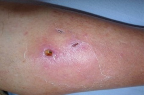 Vết loét đặc trưng của bệnh do vi khuẩn "ăn thịt người". Ảnh: Science Direct. |