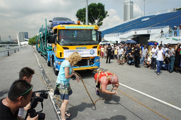 14 - Cùng một người bạn kéo chiếc xe nặng 75 tấn. (2011)