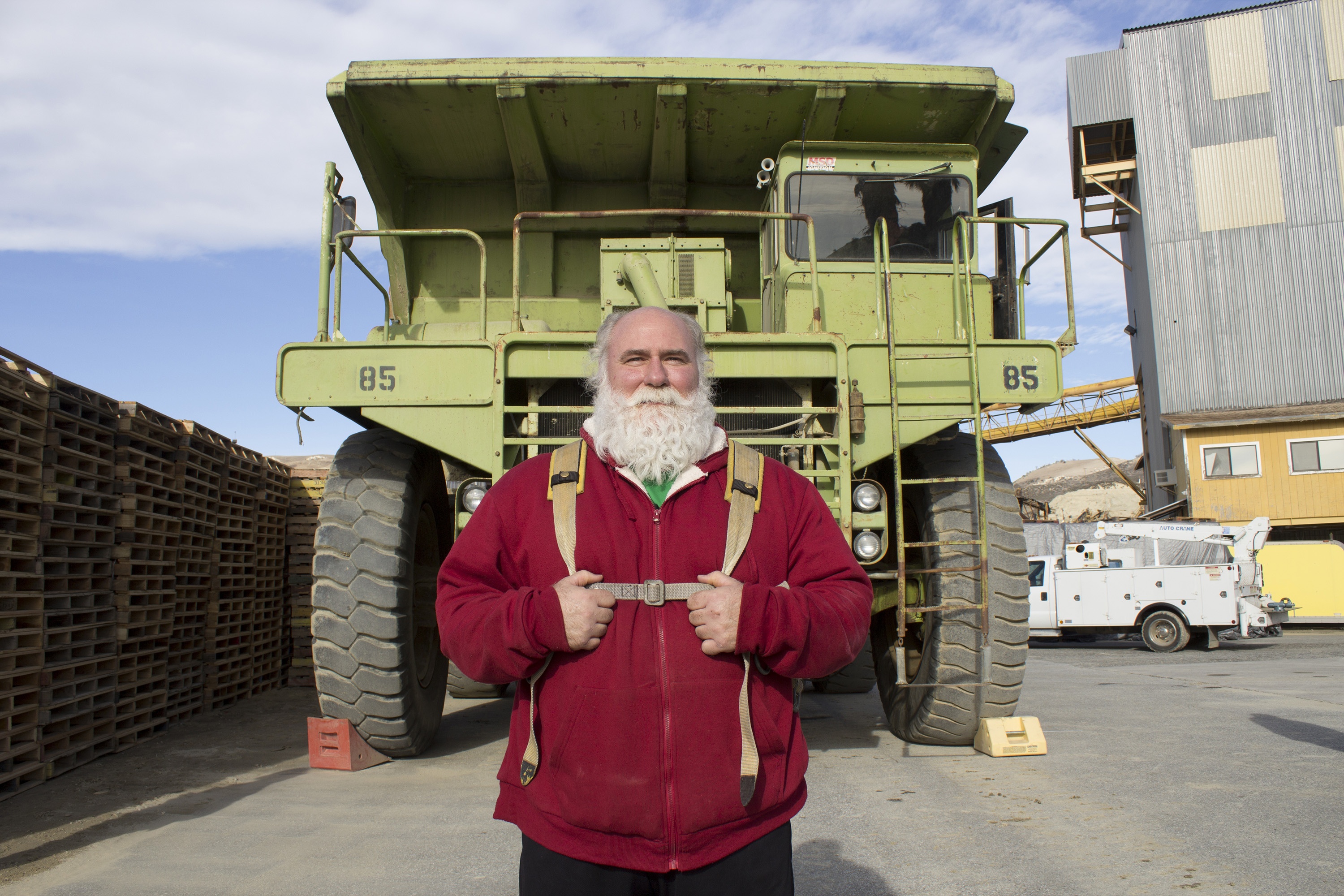 | Năm 2013, ông Kevin Fast sắm vai ông già Noel kéo chiếc xe tải 17,5 tấn và đi băng băng. |