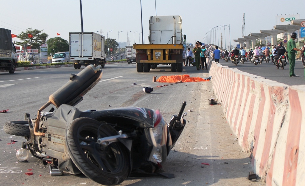 | Hiện trường vụ tai nạn trên xa lộ Hà Nội. |