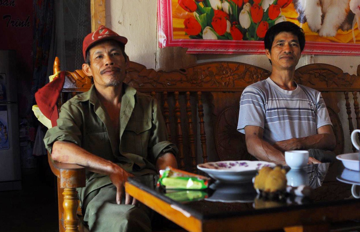 | Ông Nghìn (trái ảnh) kể lại về phong tục tuẫn táng trinh nữ giữ vàng dưới hang ma. |