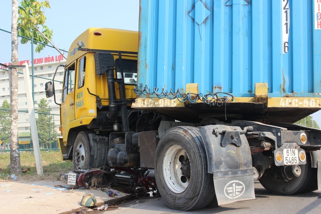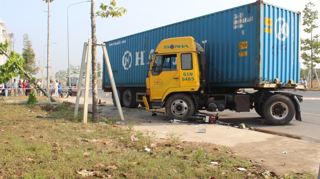 6h30 ngày 14/3, người đàn ông khoảng 40 tuổi đi xe máy từ đường nhánh ra đoạn giao với đường Dân Chủ, phường Hòa Phú, thành phố Mới, Bình Dương. Cùng lúc, xe kéo rơ-moóc từ phía sau lao tới gây tai nạn.