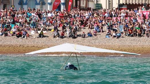 Ông Ron Freeman, 57 tuổi, lập thành tích trên trong cuộc thi Người chim (Birdman) ở cầu cảng Worthing, Tây Sussex, Anh. Tuy nhiên, Freeman không thể giành phần thưởng trị giá 10.000 bảng Anh cho danh hiệu cú nhảy xa nhất trên 100 m, vì gió mạnh khiến tàu lượn đi chệch hướng và chuyến bay của ông không hợp lệ.