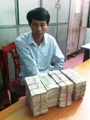 | Tài xế xe khách Trần Hậu Thọ và tang vật vụ án gần 400.000 USD. (Ảnh: Công an Kỳ Anh cung cấp). |