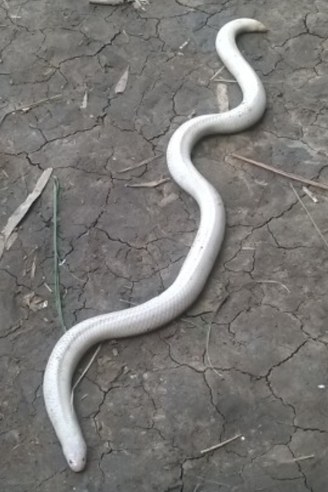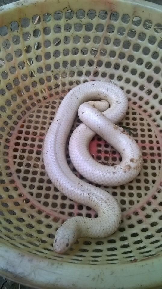 Vào ngày 29/6, khi đi làm đồng, ông Nguyễn Ngọc Em ngụ tại ấp Thới Thanh, xã Trường Xuân B, huyện Thới Lai, TP. Cần Thơ, vô tình thấy vật màu trắng trong đám cỏ mép ruộng. Đi đến gần, nhìn kỹ, bác phát hiện cái đống màu trắng ấy là một con rắn nặng khoảng 200g đang nằm phơi nắng nên bắt về.