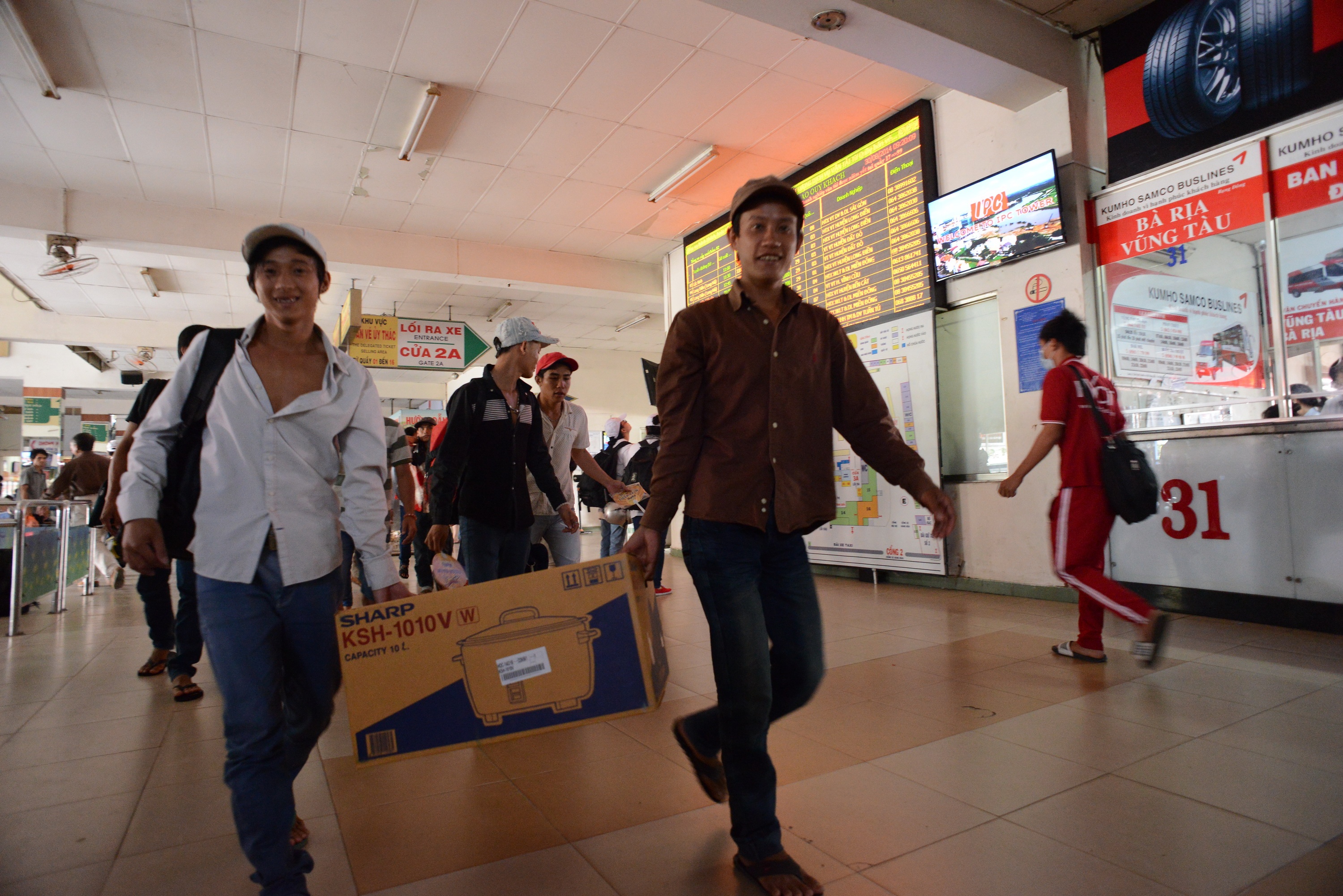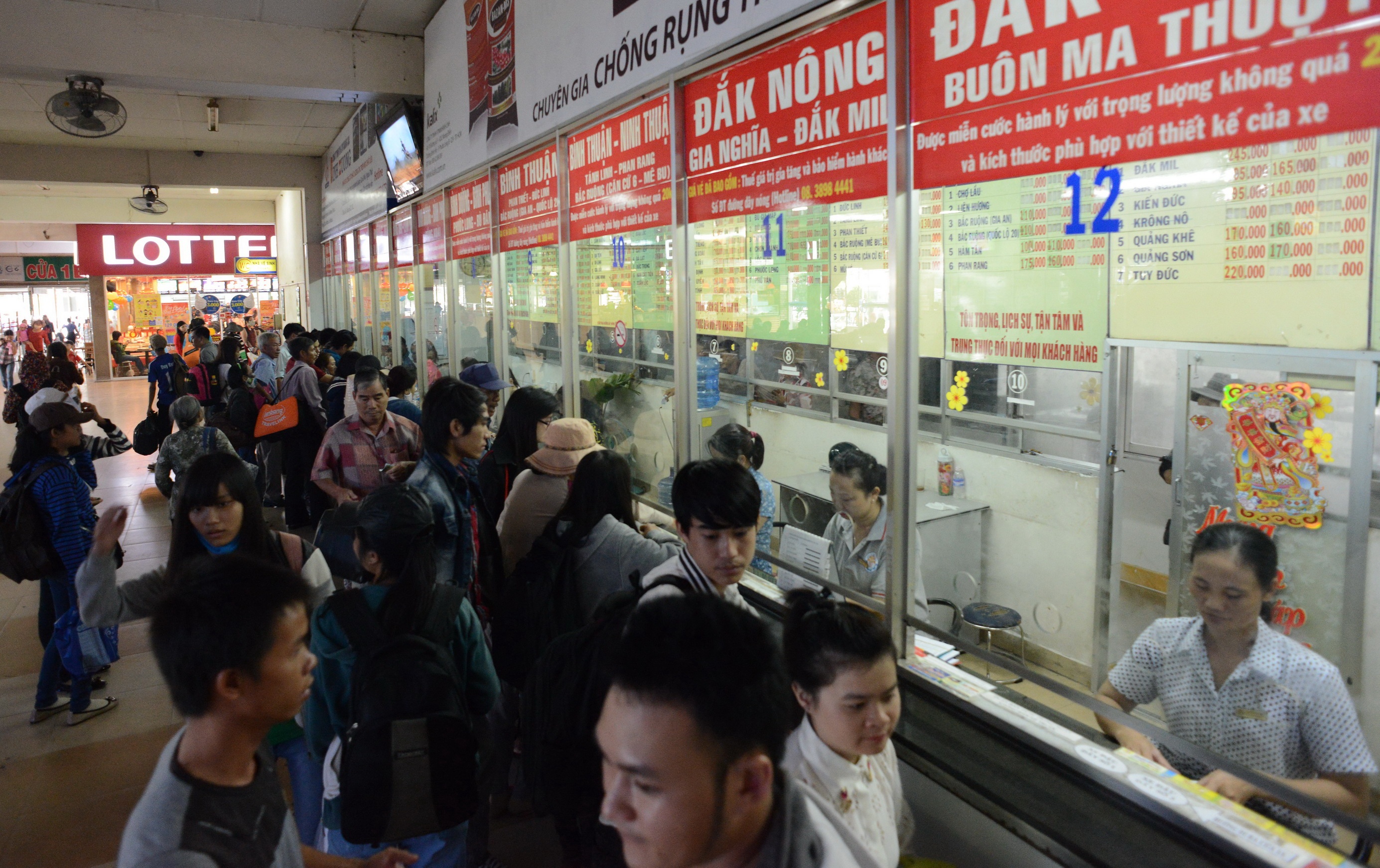 | Lượng khách đổ về bến xe nhiều nên trong nhà chờ bến xe nhiều người chờ mua vé và chờ xe xuất phát đông hơn ngày thường nhiều lần. Anh Trần Duy Anh (quê Khánh Hòa), cho biết do dịp 30/4 và 1/5 vừa rồi, anh có về quê thăm gia đình nên đợt này được nghỉ dài ngày, anh cùng nhóm bạn lên chương trình đi chơi các tỉnh Tây Nguyên. |