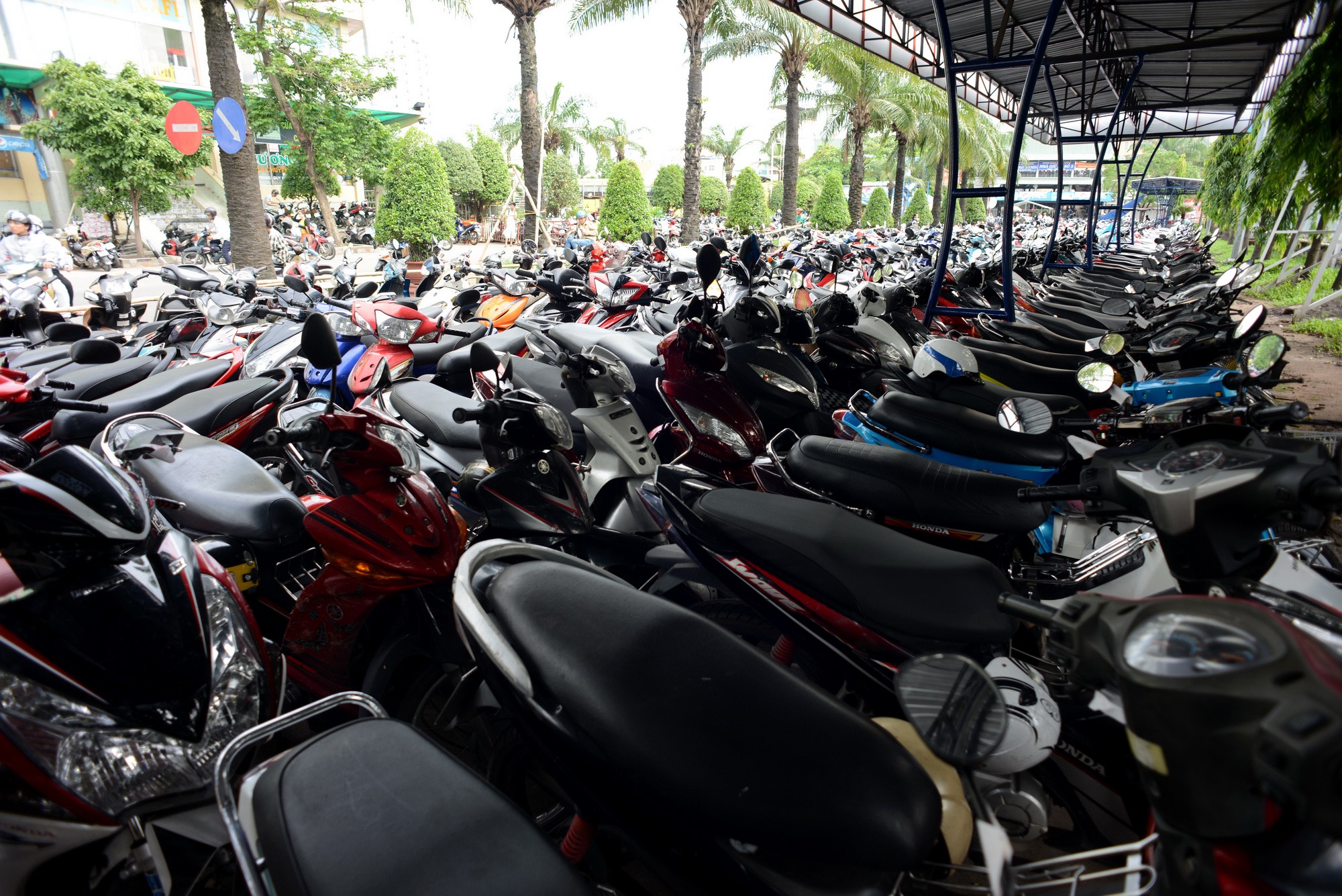 Bãi gửi xe máy qua đêm tại bến chật cứng.