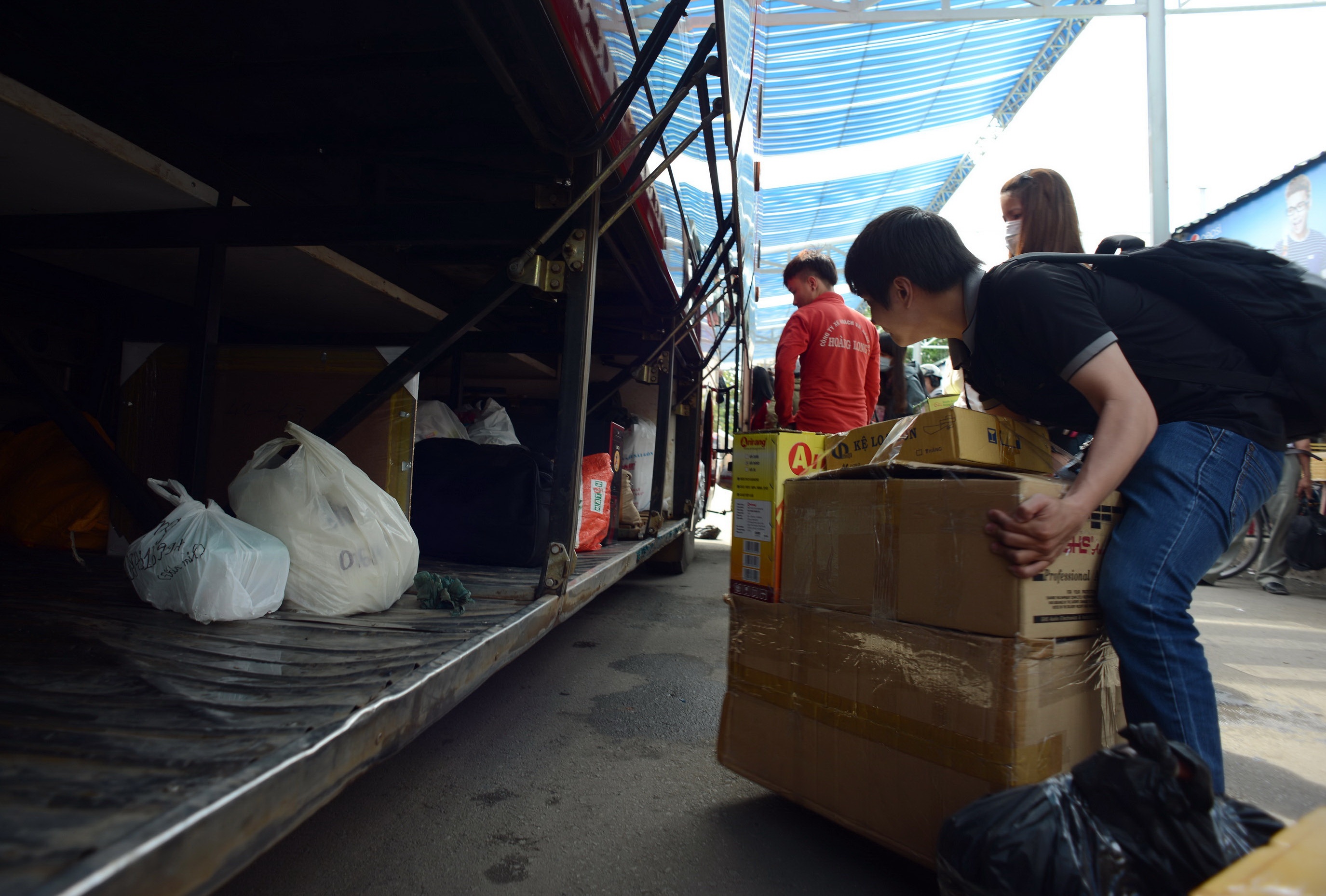 Trưa 30/8, các tuyến xe buýt, xe tải, xe taxi, xe ôm liên tục đổ về bến xe Miền Đông (TP.HCM). Nhiều người lỉnh kỉnh hành lý chuẩn bị về quê tranh thủ nghỉ lễ.