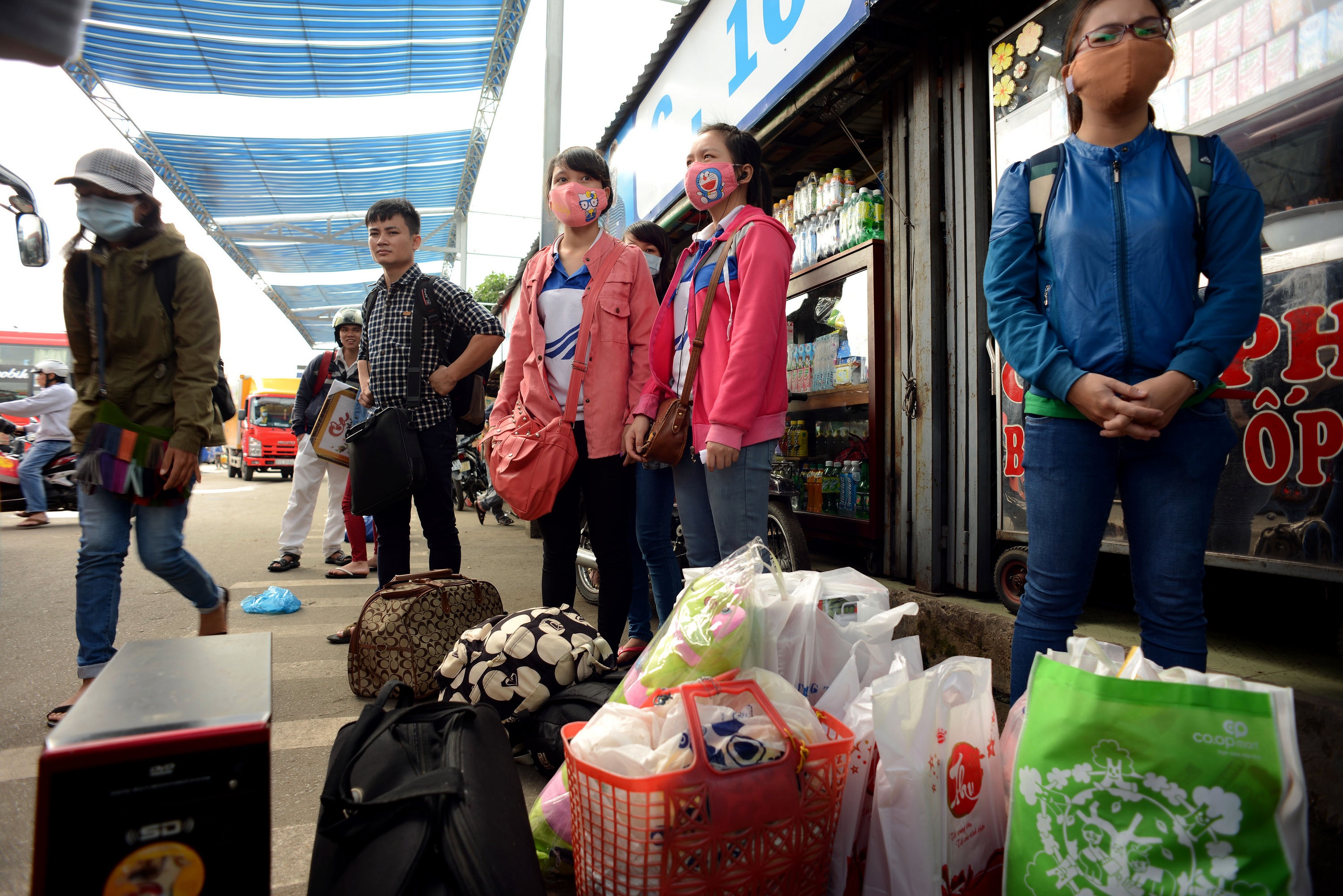| Một số bạn trẻ chờ xe về Đăk Nông. |